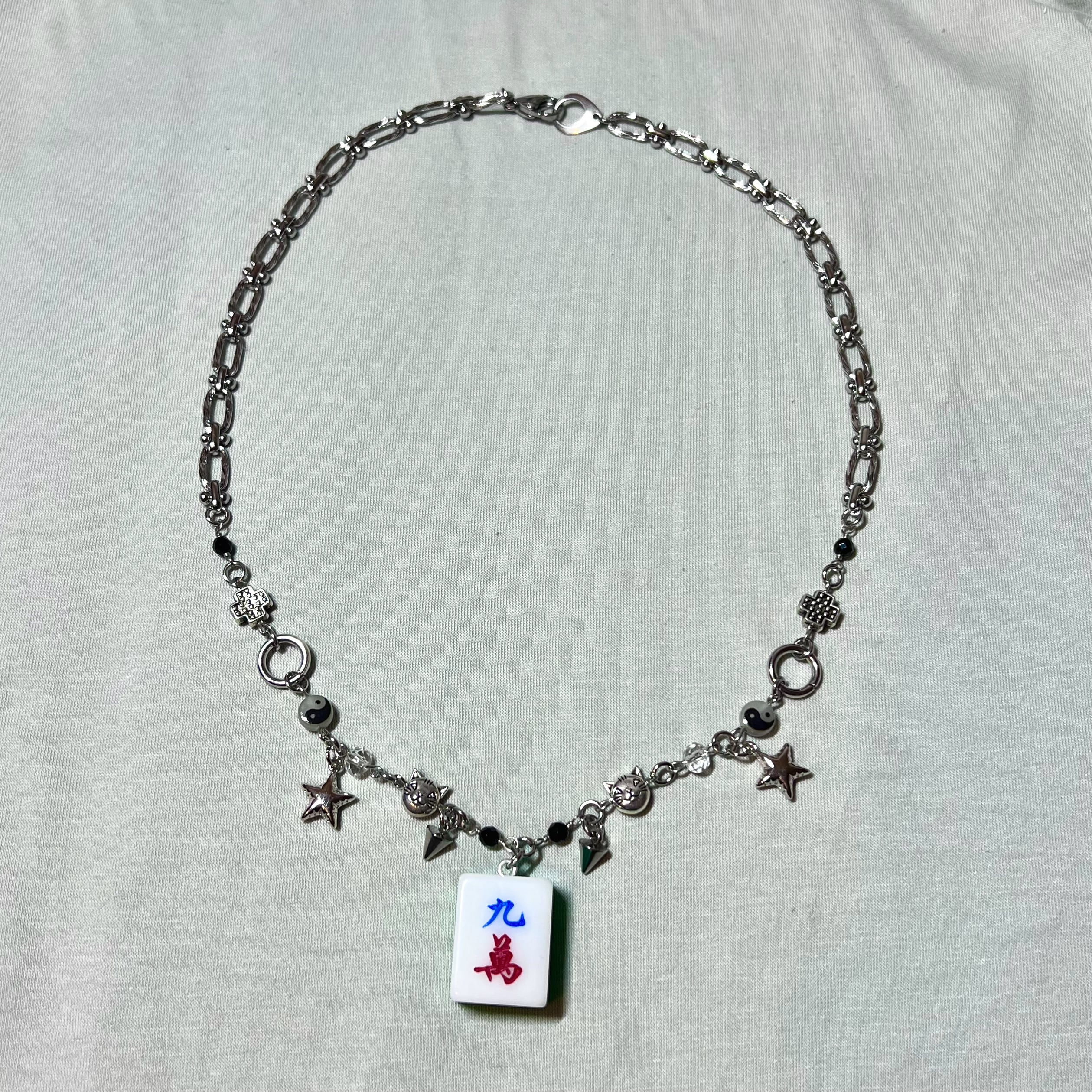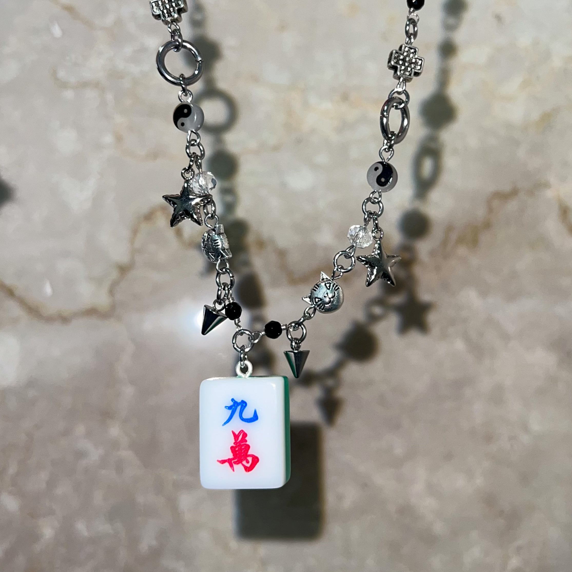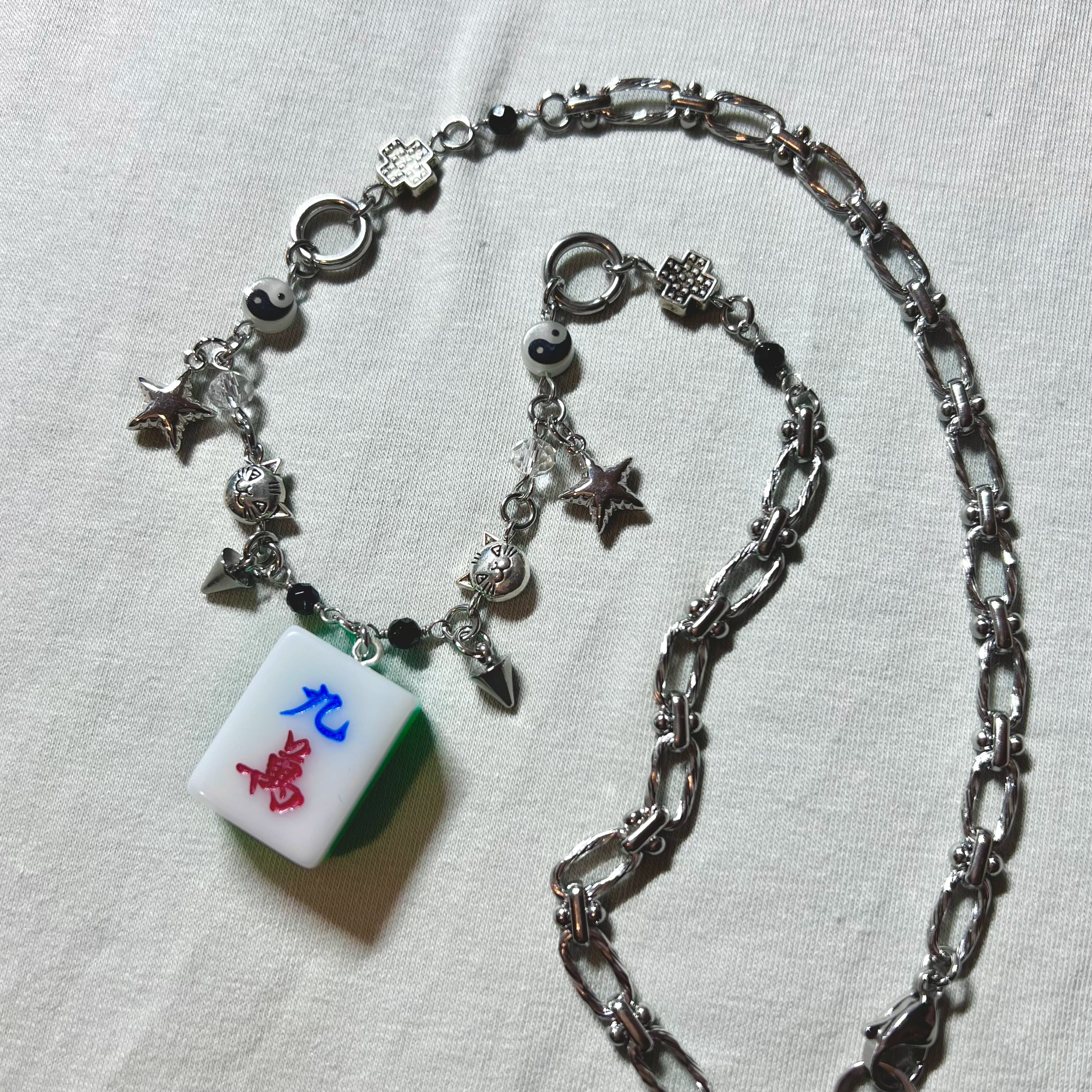 シルバーチェーンを基調にシャラシャラと個性派なパーツを並べました。