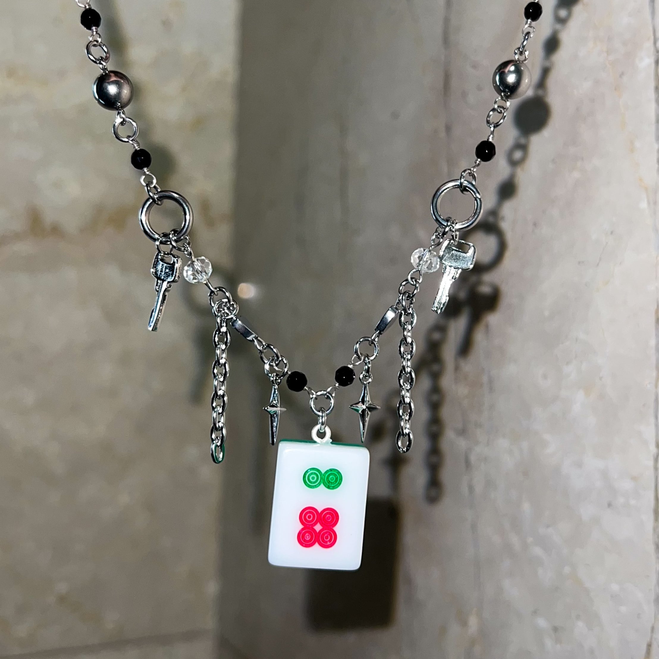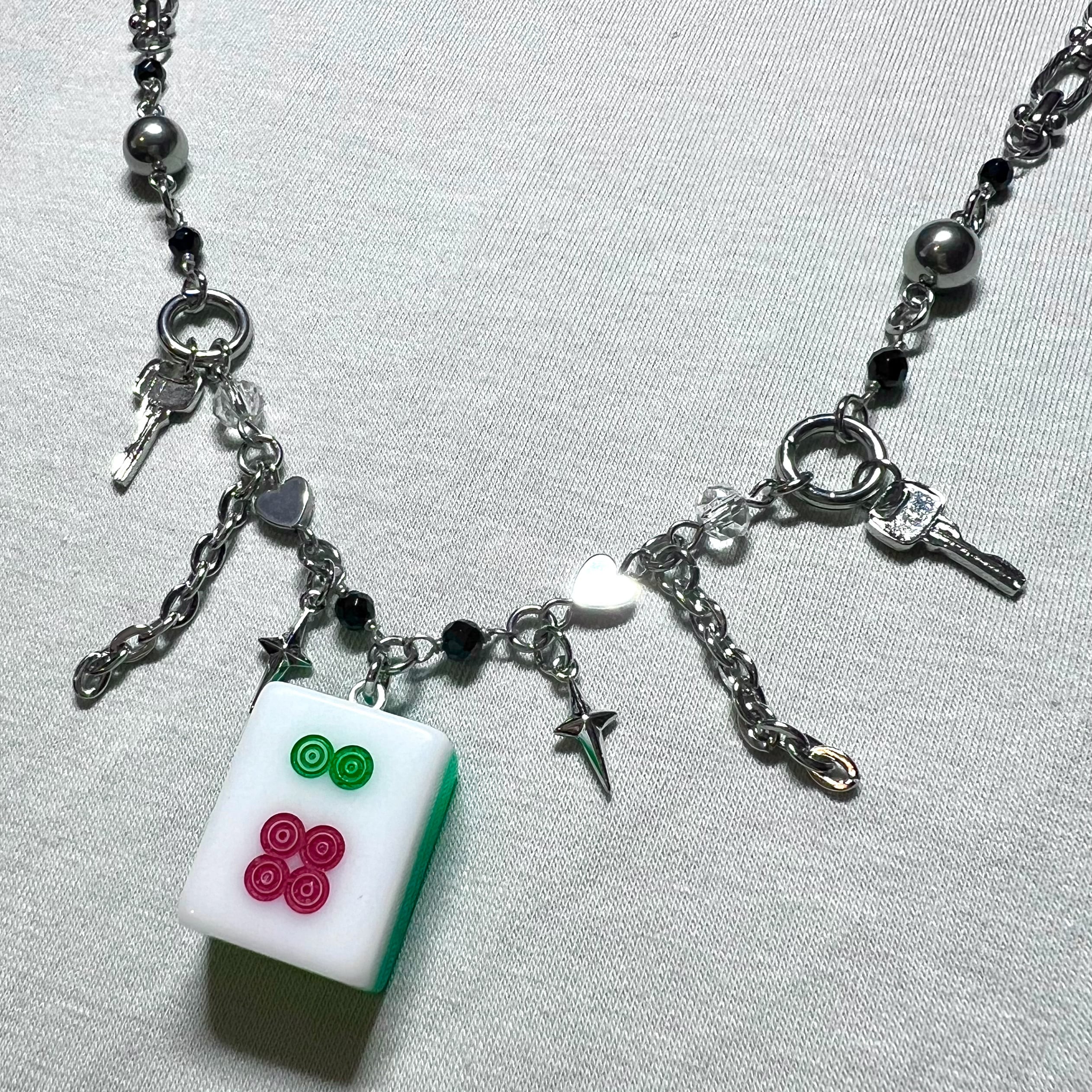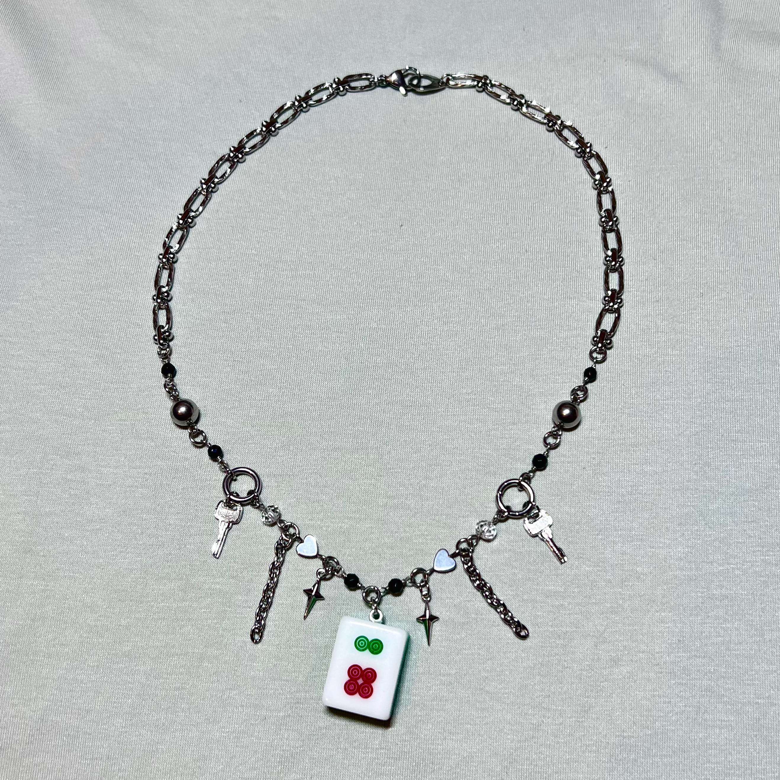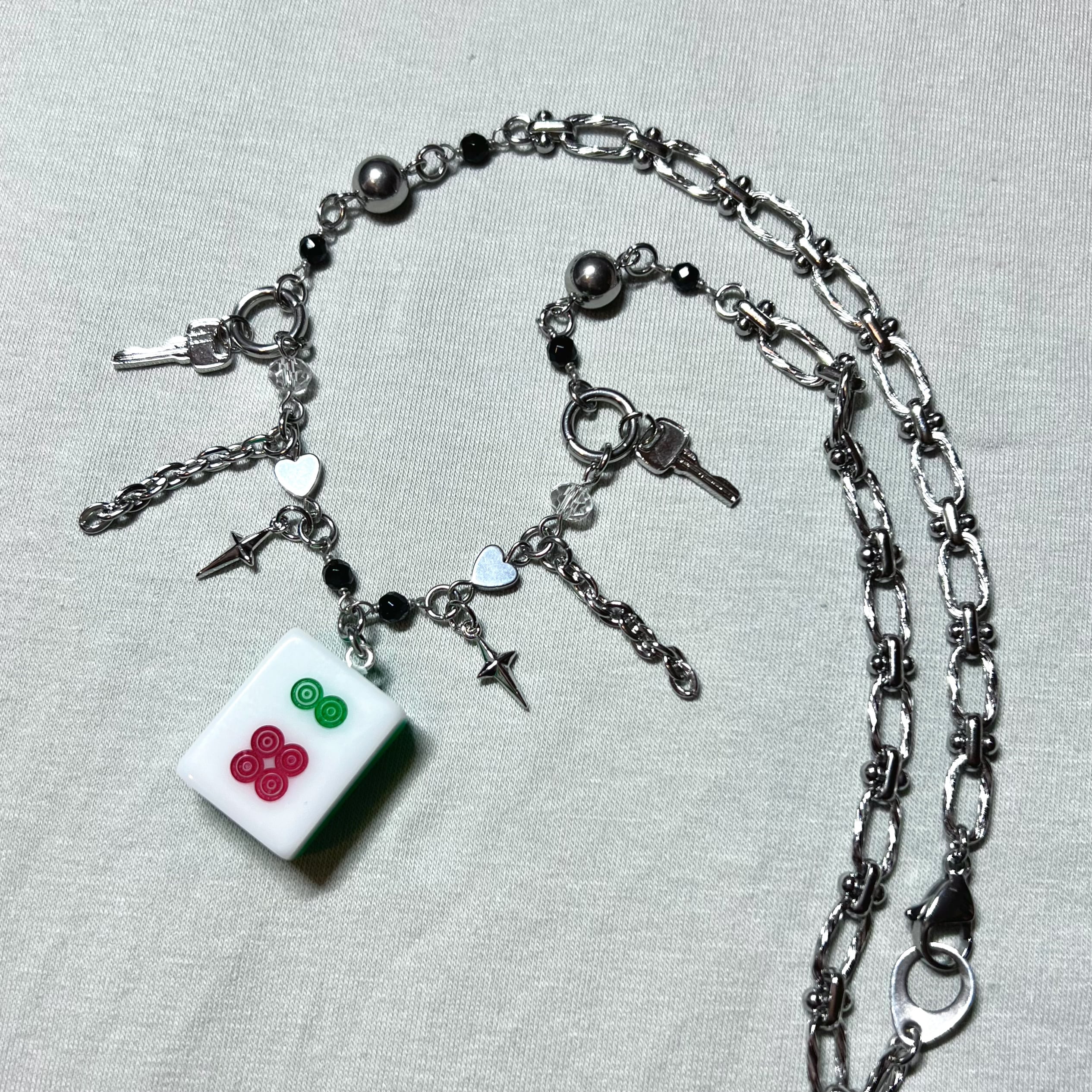 シルバーチェーンを基調にシャラシャラと個性派なパーツを並べました。